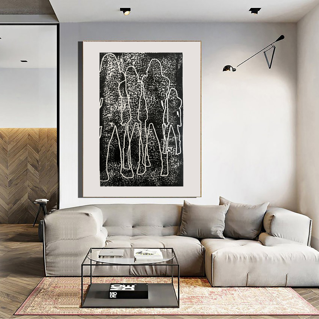 Elegant female silhouettes Linoleography ink on handmade paper.