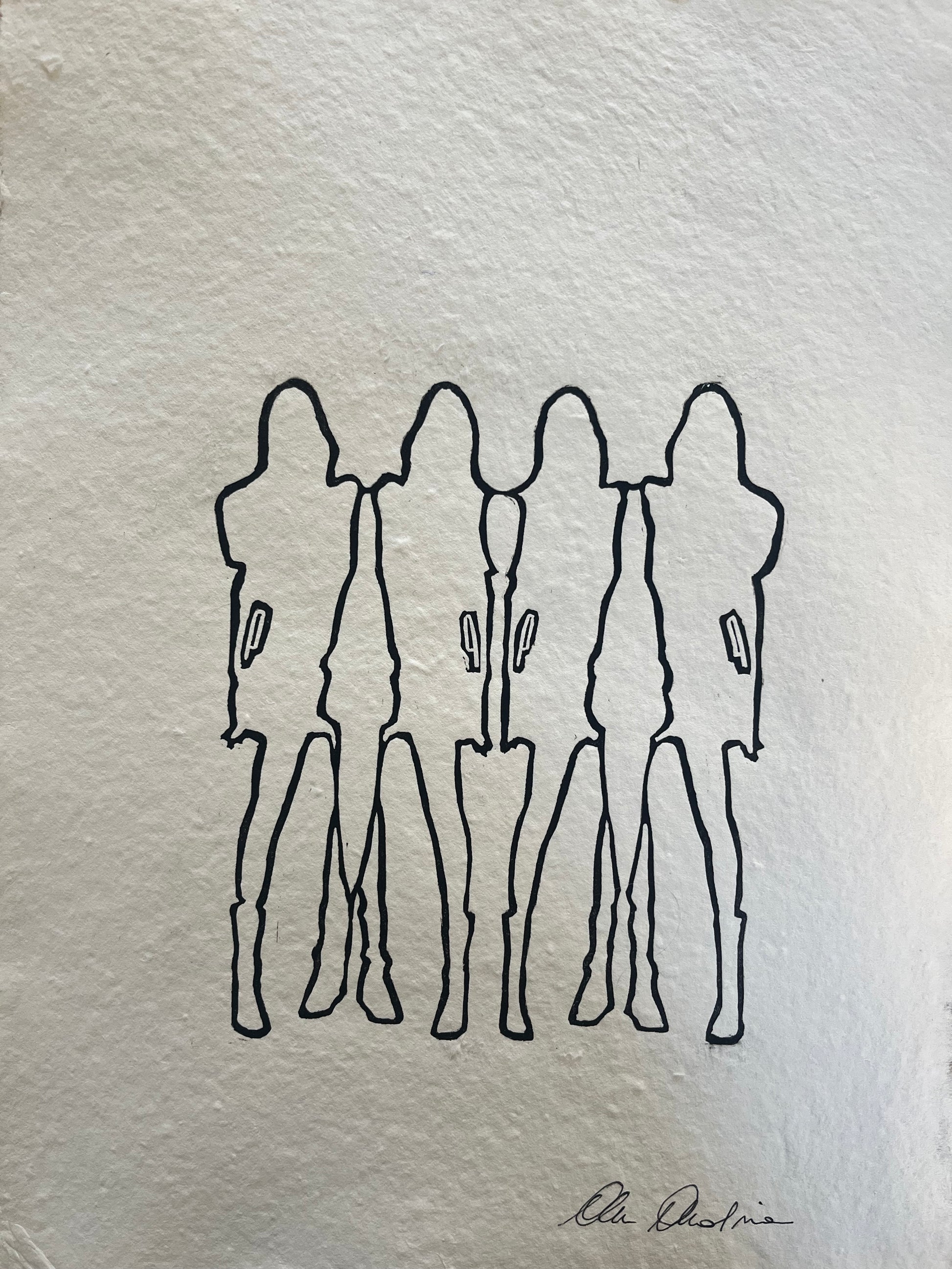 Elegant female silhouettes Monotype ink on Cotton handmade paper.