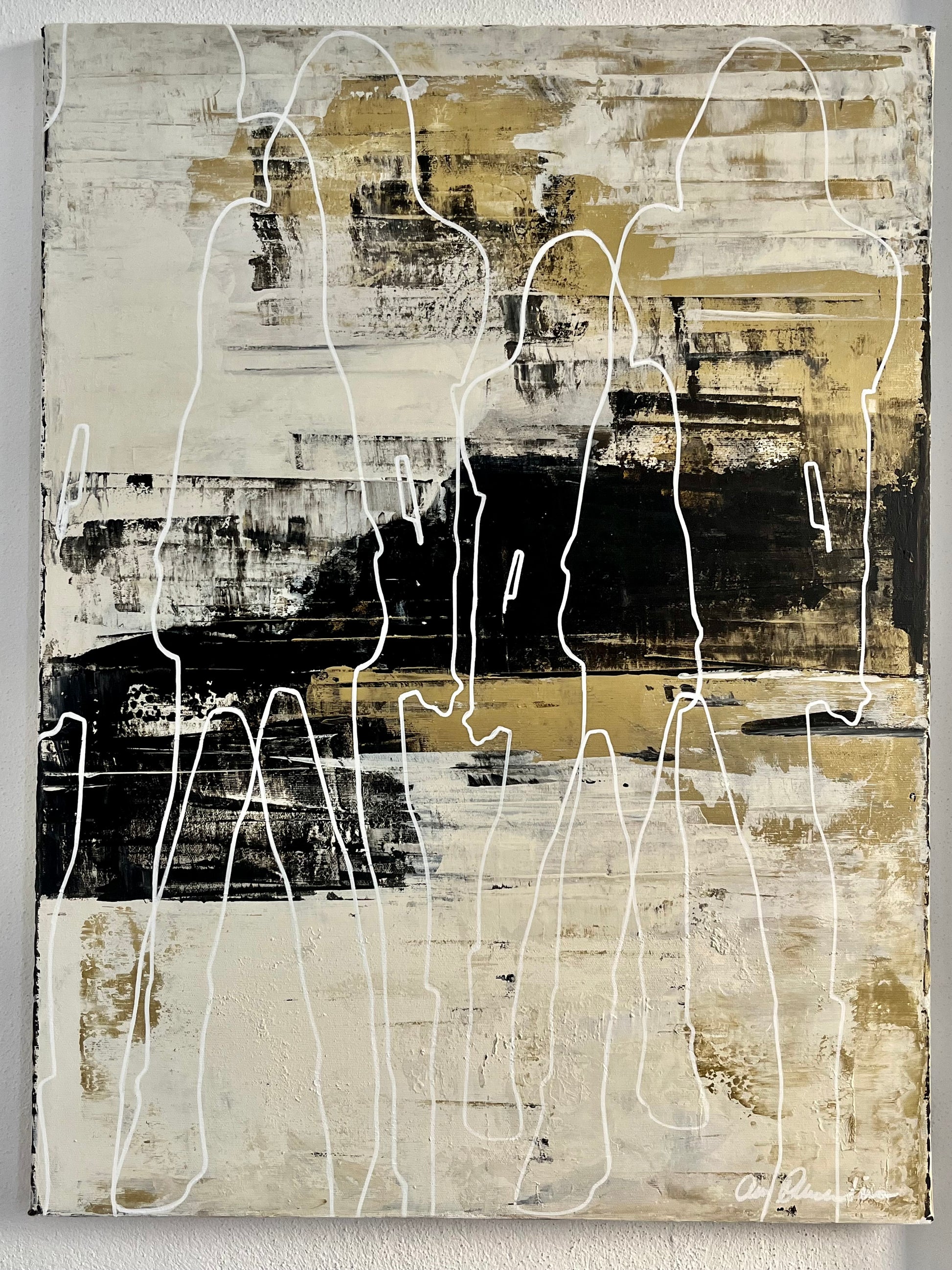 "Entrepreneurs" - Elegant Abstract Line Female Body Painting on Canvas