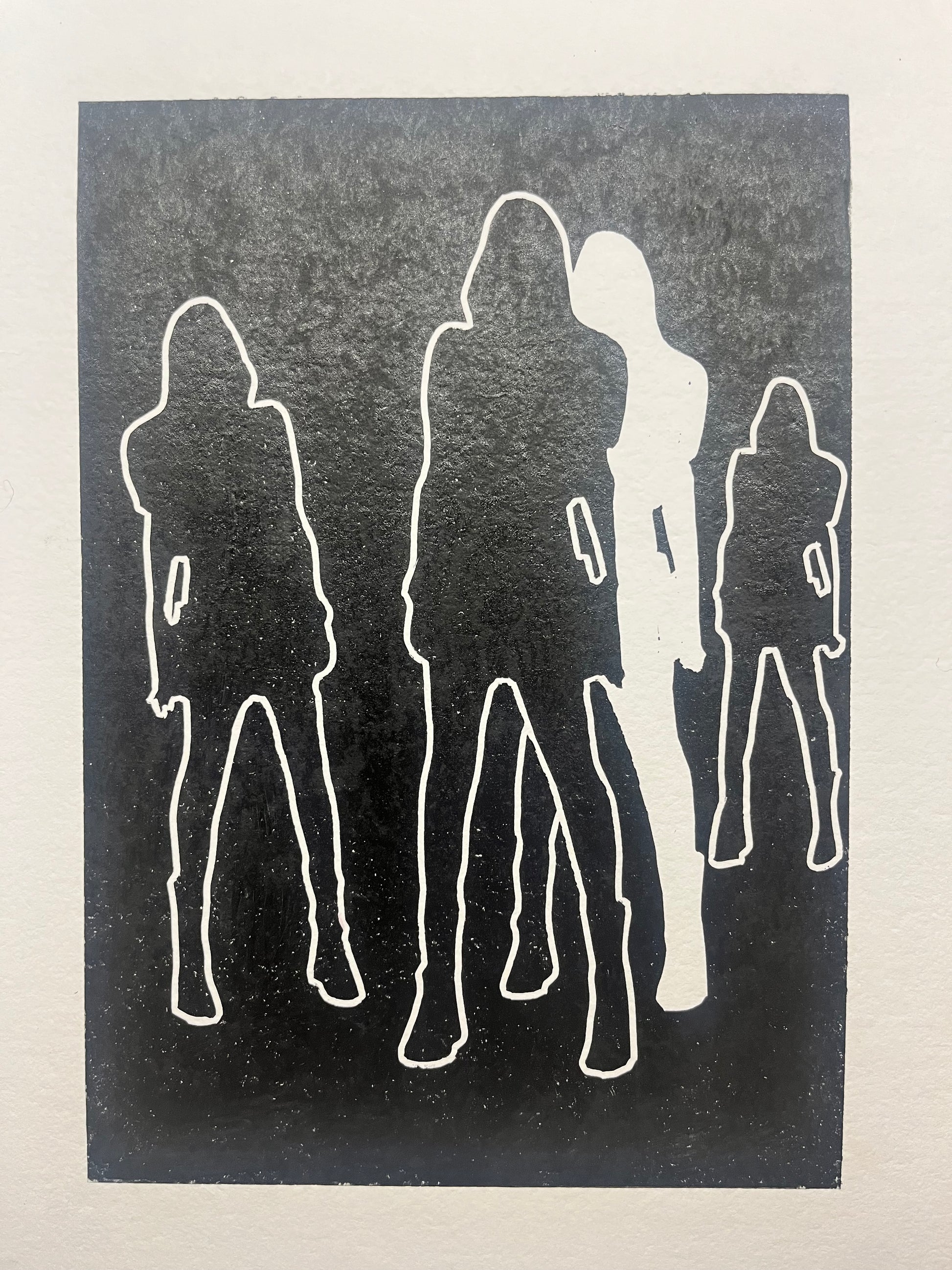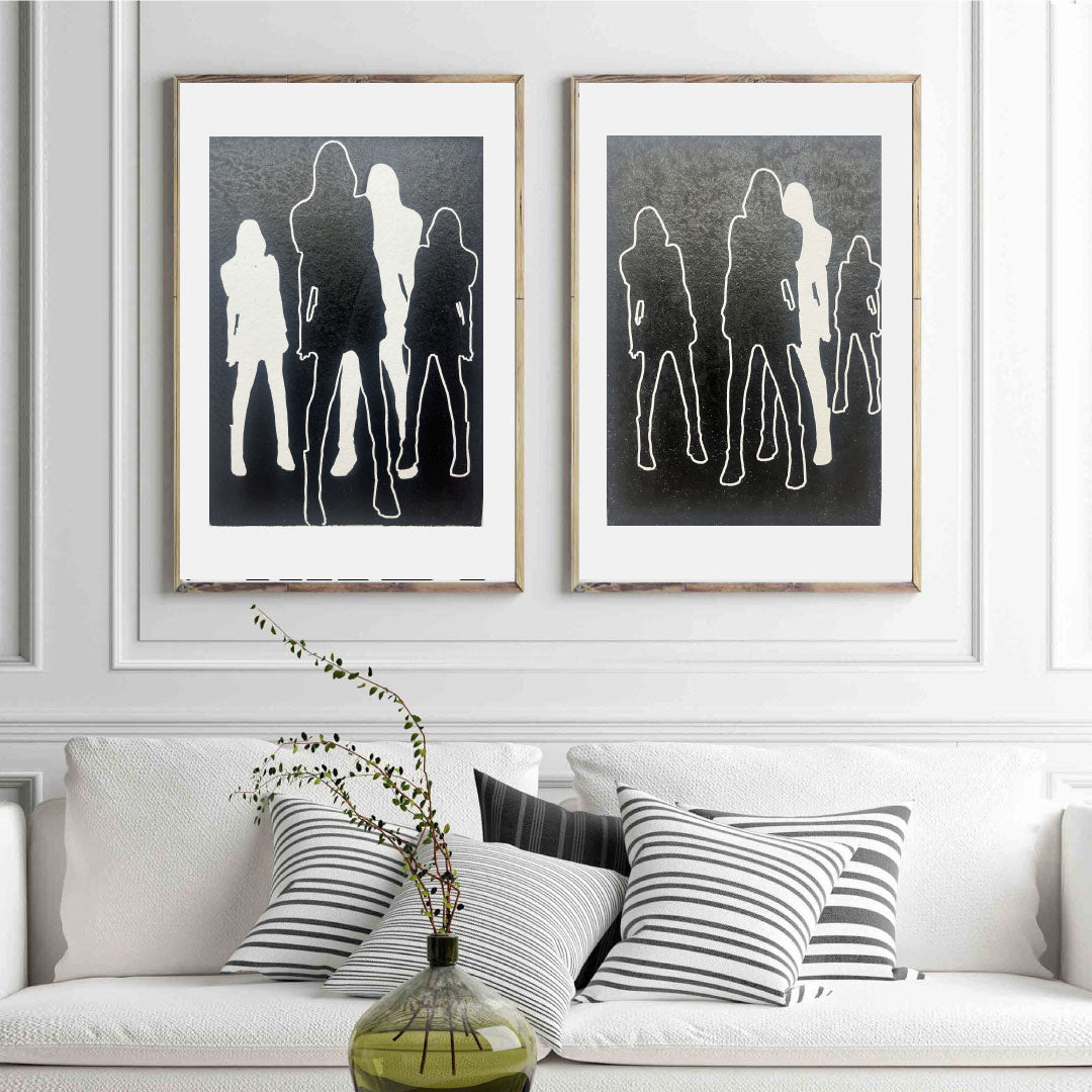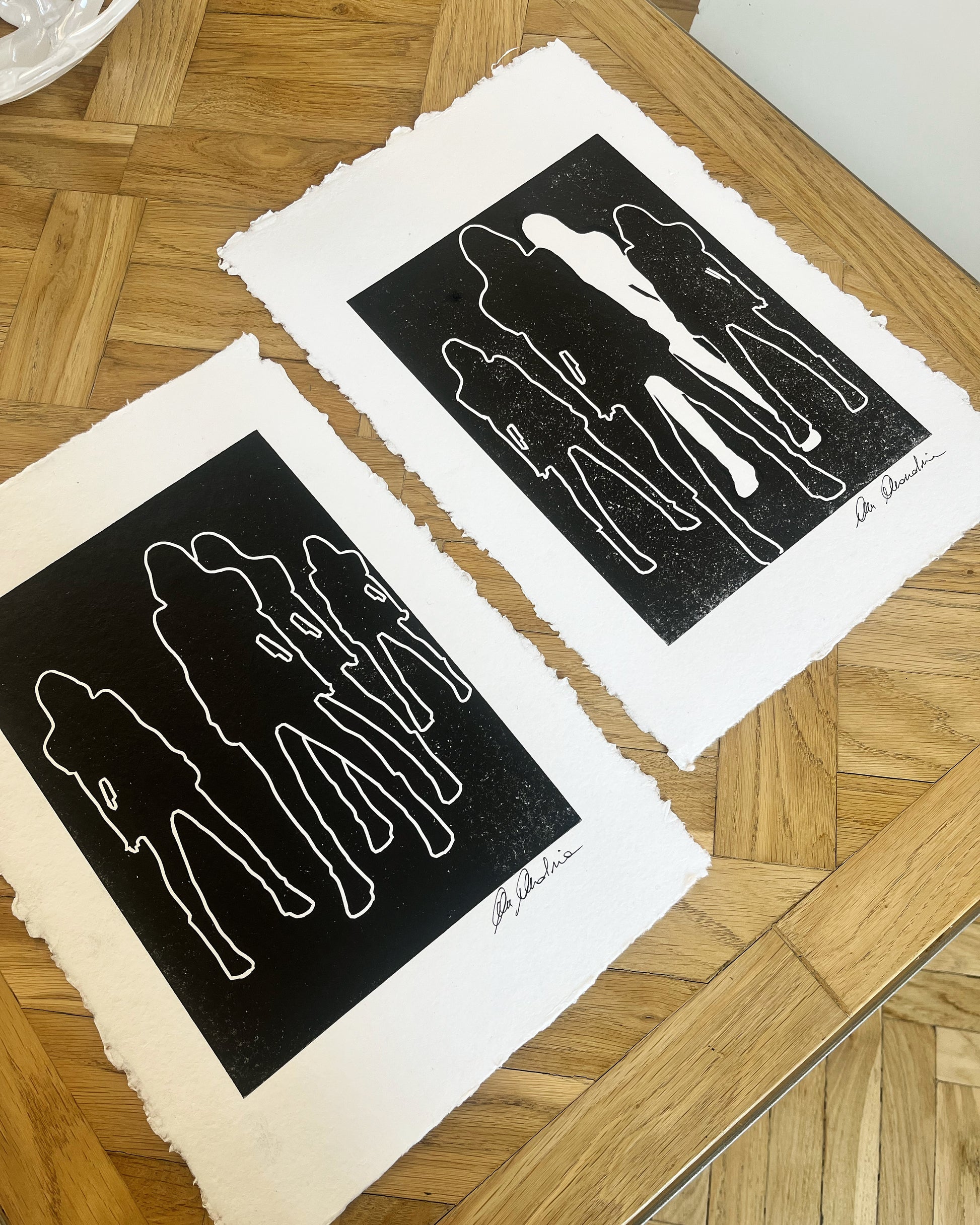 Elegant female silhouettes Monotype ink on Cotton handmade paper.