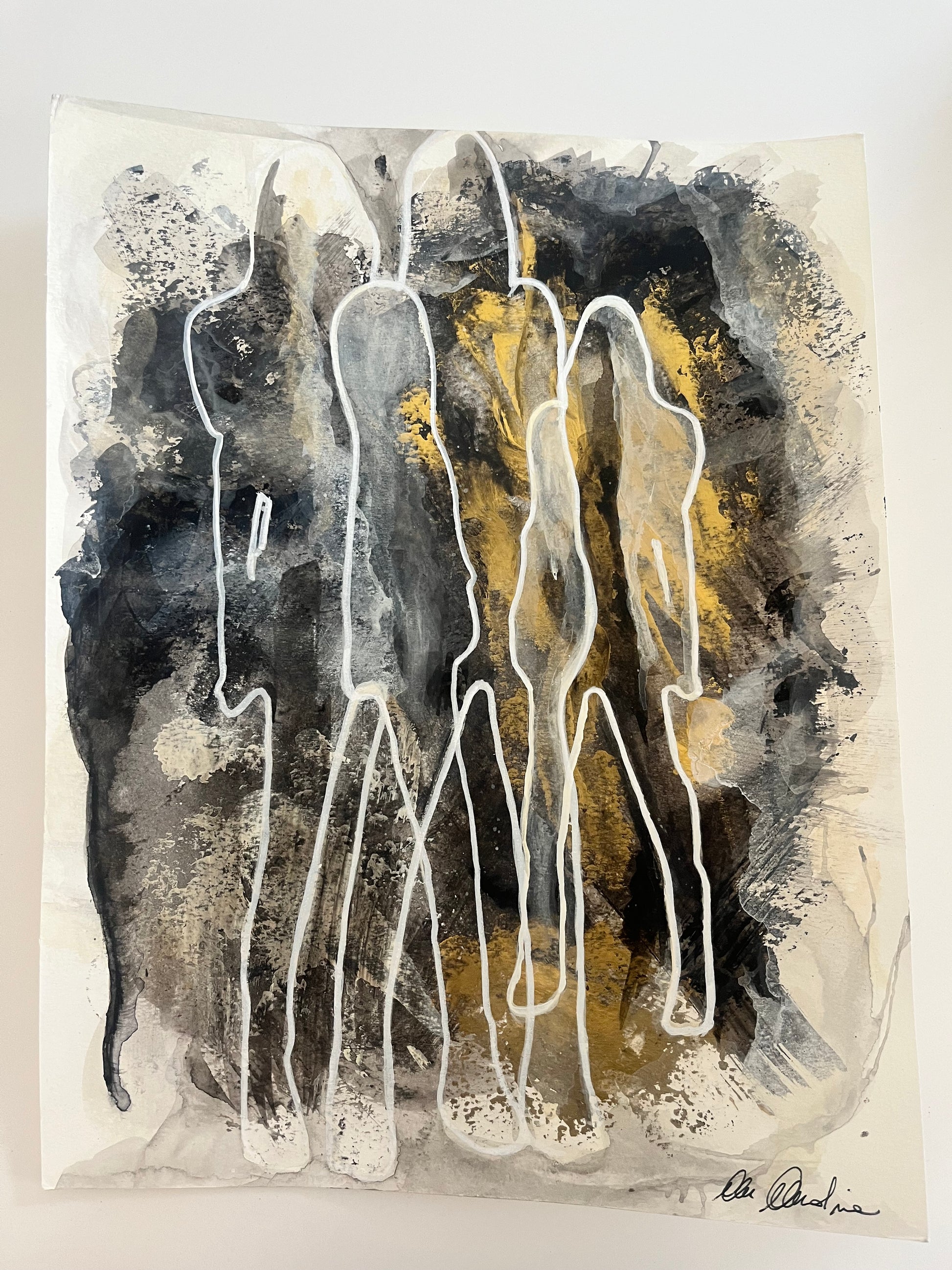 Elegant female silhouettes Origina Acrylic on Canson paper.