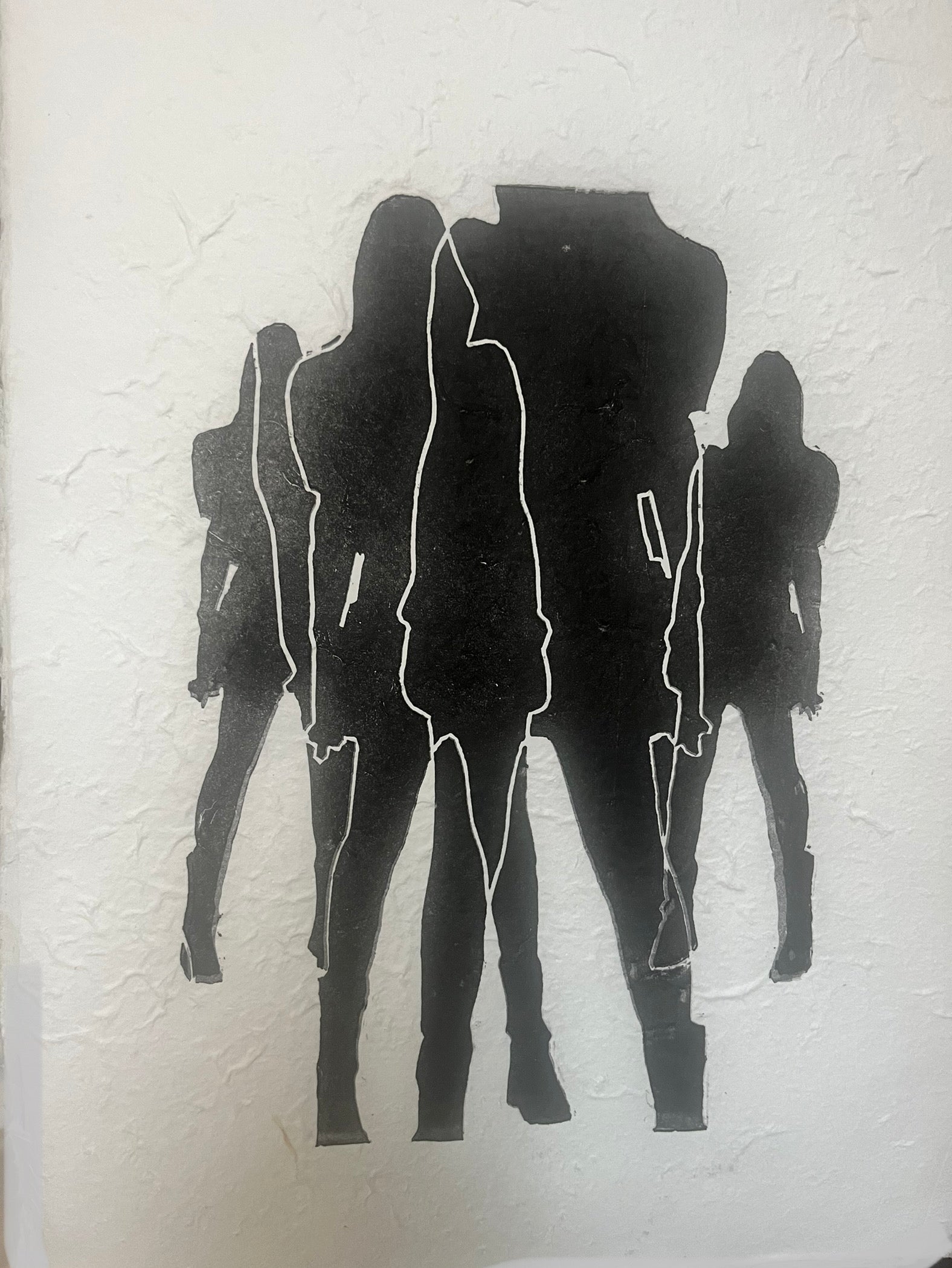 Elegant female silhouettes Monotype ink on Cotton handmade paper.