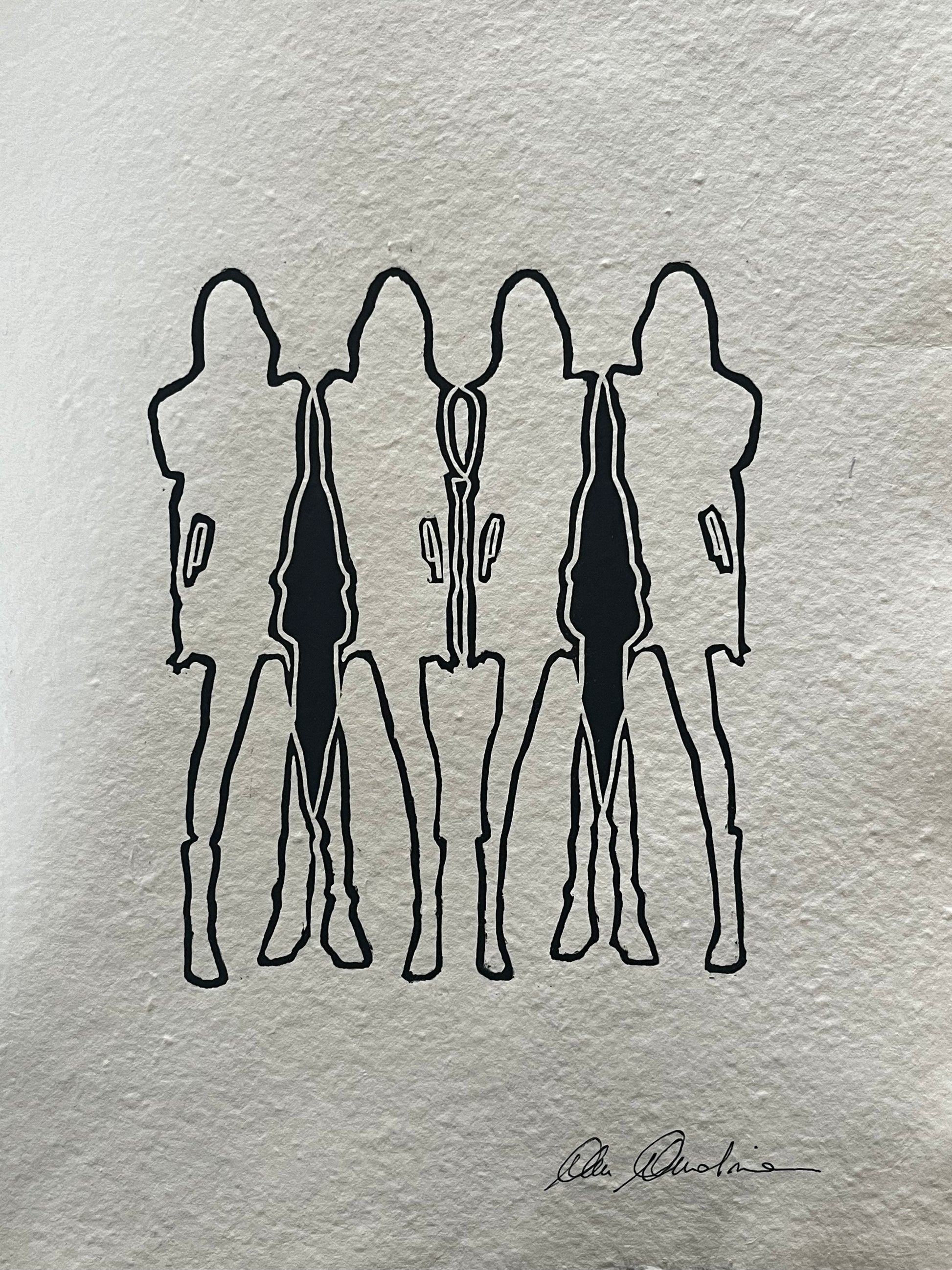 Elegant female silhouettes Monotype ink on Cotton handmade paper.