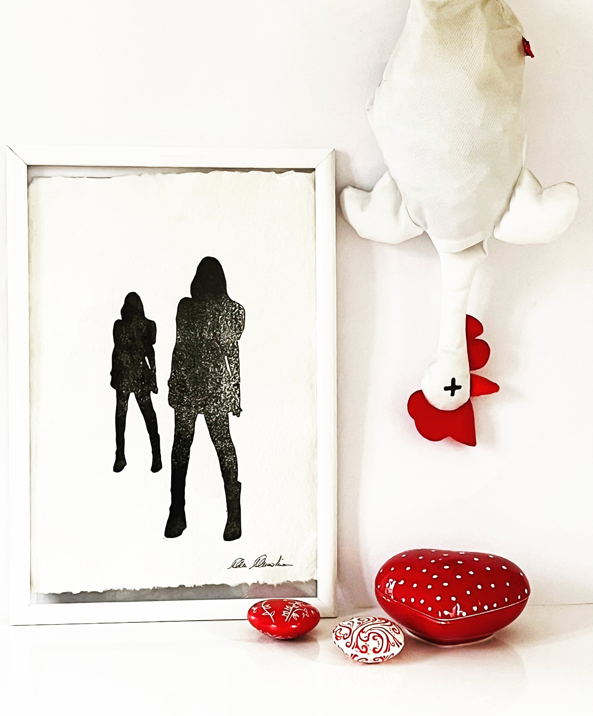 Elegant female silhouettes Monotype ink on Cotton handmade paper.
