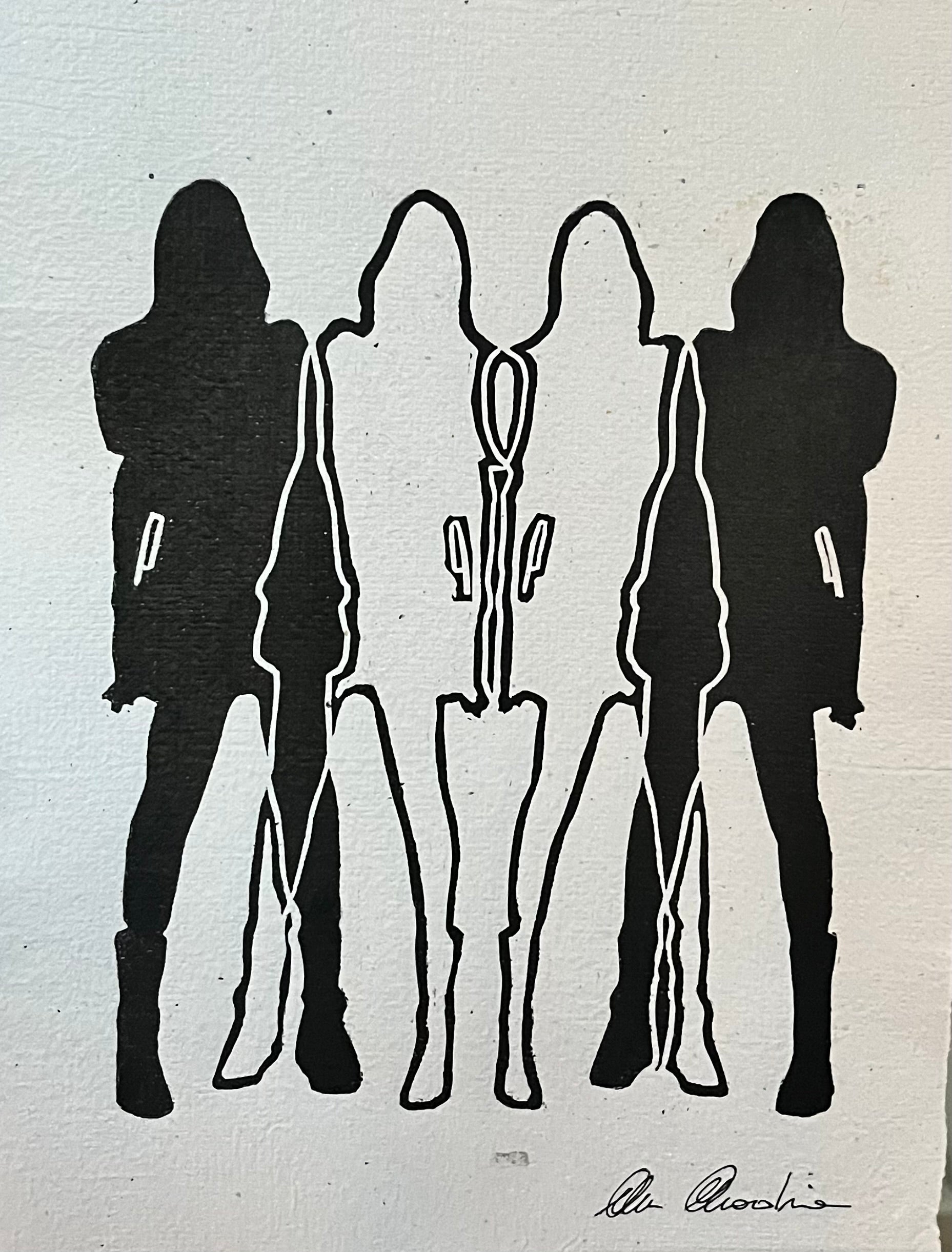 Elegant female silhouettes Monotype ink on Cotton handmade paper.