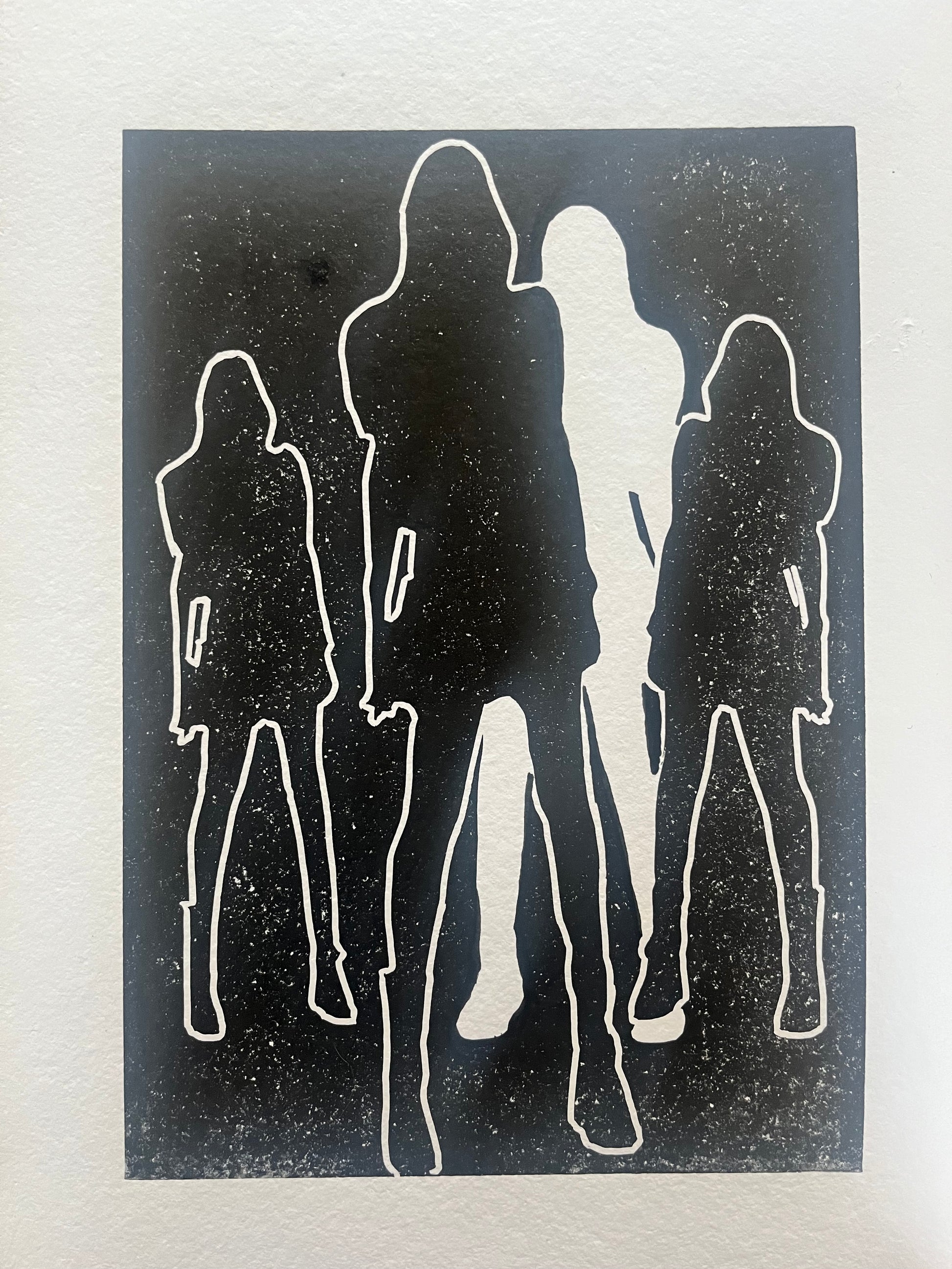 Elegant female silhouettes Monotype ink on Cotton handmade paper.